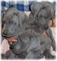 | We could write pages and pages to tell about the Great Dane, but we will try to be brief and just give you a general idea. Every Dog is different. First and foremost the Great Dane is a canine, but like every breed the Dane has certain characteristics that have been purposely bred in and refined for generations. They offer so much in their short lives: companionship, joy, loyalty and fulfillment. Great Danes are a beautiful and magnificent breed. They also require a lot of time, energy and money to be raised properly and successfully. |